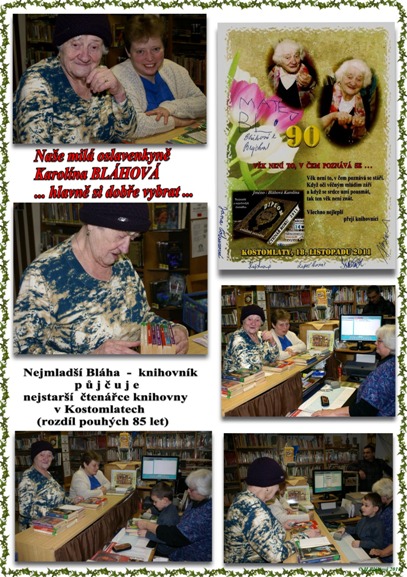 Oslavenkyně již zažila několik generací kostomlatských knihovníků, ten nejmladší jí půjčoval při oslavě jubilea
