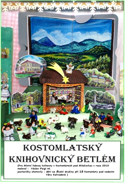 Středem pozornosti byl Kostomlatský, knihovnický betlém, který vznikl díky nápadu paní knihovnice, šikovnosti dětí ze školní družiny a malířské dovednosti synovce paní knihovnice. Malované pozadí zachycuje krajinu v okolí Kostomlat a místní pamětihodnosti