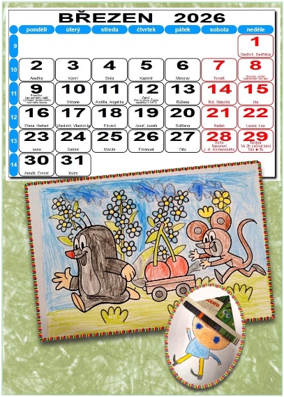 Letošní kalendář je připravený z kreseb , které děti z 1. stupně kostomlatské školy nakreslily k 60. výročí Večerníčka. Kreseb bylo daleko více než je měsíců v roce a tak bude v prostorách klubovny Komunitního centra uspořádána výstava, aby se na každého dostalo. Tak snad se v kalendáři někteří autoři poznají.